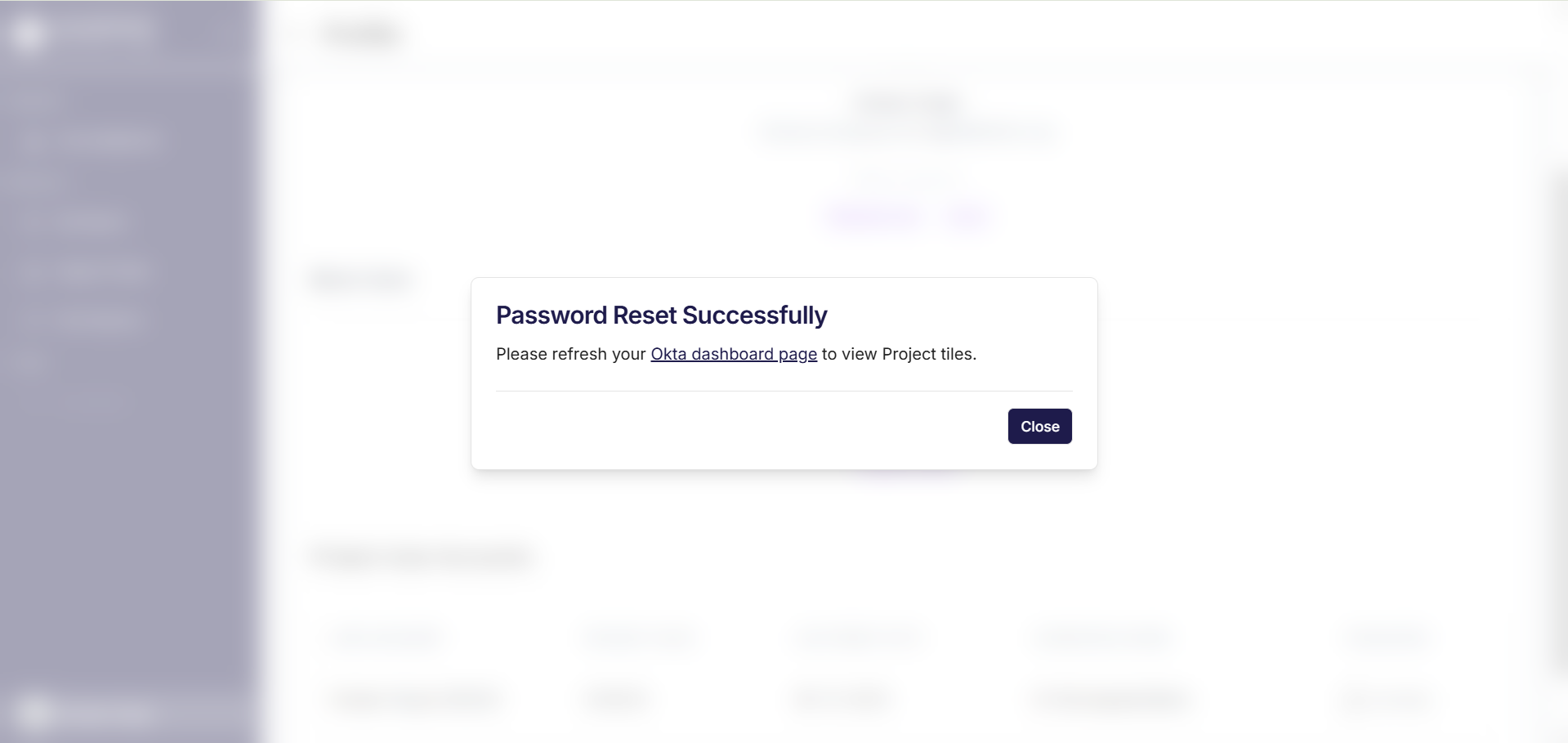 This will direct you to your profile page. You can see information like the Base User and Project User Accounts. Under the Project User Accounts, click on the Change button under “Password.” Refer to the image underneath.